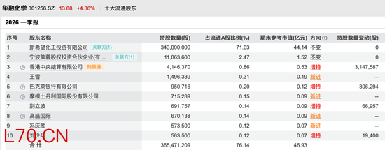 截至一季度末,华融化学前十大流通股东