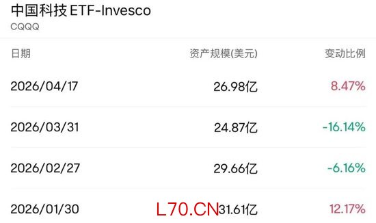 中国科技ETF-Invesco(CQQQ)4月13日至4月17日一周净流入超1800万美元。该产品自4月份以来持续获得资金净流入,4月初至4月17日合计净流入超3200万美元。该产品的规模从3月底的24.87亿美元升至4月17日的26.98亿美元,增超8%。