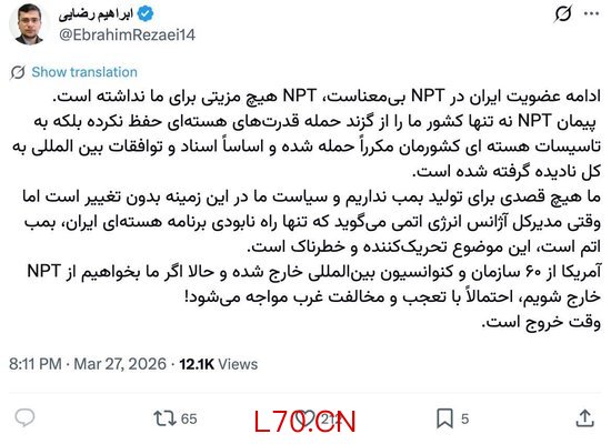 伊朗议会国家安全与外交政策委员会发言人易卜拉欣·雷扎伊就相关事件表示,伊朗正在考虑退出《不扩散核武器条约》。他指出,《不扩散核武器条约》不仅未能保护伊朗免受核大国袭击,反而使伊朗核设施多次遭到攻击,国际文件和协议也遭到完全忽视。