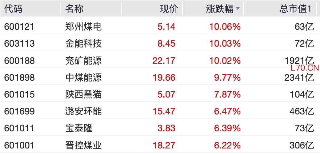中煤能源一度涨停,兖矿能源、郑州煤电、金能科技均涨停,中国神华涨超2%,陕西煤业涨超3%,潞安环能涨超6%,山西焦煤、淮北矿业、晋控煤业等涨幅居前。