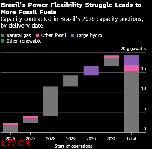 巴西于3月举行了两轮备用容量竞价——当地称为长期备用容量竞价(LRCAP)——以应对稳定容量短缺风险。竞价创下签约容量纪录,两轮竞价合计超过19GW,这些容量将从2026年至2031年逐步并网。在已签约的总容量中,38%来自续签合同的现有资产,合同期限为10-15年。