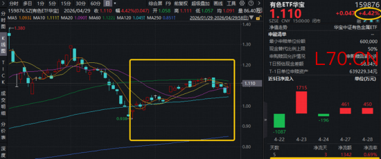 一、“绩优生”扎堆!有色板块全面升温!华宝基金有色ETF(159876)涨4.42%,北方稀土、永兴材料等5股涨停