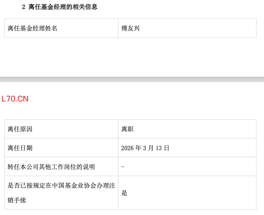 3月12日,广发基金发布公告,百亿级基金经理傅友兴正式卸任两只核心产品并离职。