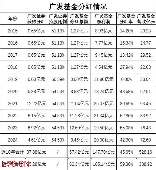 近年来,公司在实施员工持股后,对股东保持了相对稳定的分红水平。即便部分基金经理管理规模有所下降,股权分红仍为其带来可观收入,早前有媒体统计过广发基金历年的分红情况。