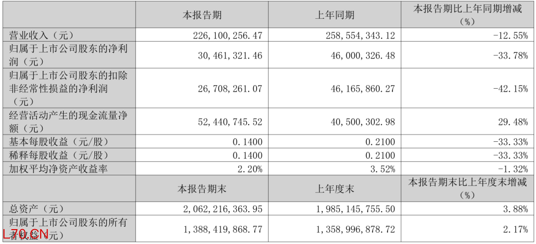 今年第一季度,芯瑞达实现营业总收入2.26亿元,同比下降12.55%;归母净利润3046.13万元;扣非净利润2670.83万元。