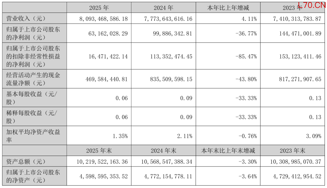 2025年,洲明科技实现营业收入80.93亿元,归母净利润6316.20万元,扣非归母净利润为1647.14万元。主要系海外业务收入占比和毛利率下滑及计提相关减值所致。